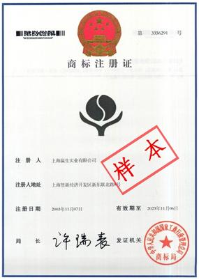 1.《商标注册证》采用无荧光防伪水印纸。水印图案为工商红盾徽记图样及“商标注册证”文字组成。工商红盾徽记图样为灰度水印,“商标注册证”文字为白水印,位于工商徽记图案下方。水印图案共三组,呈品字形分布。
